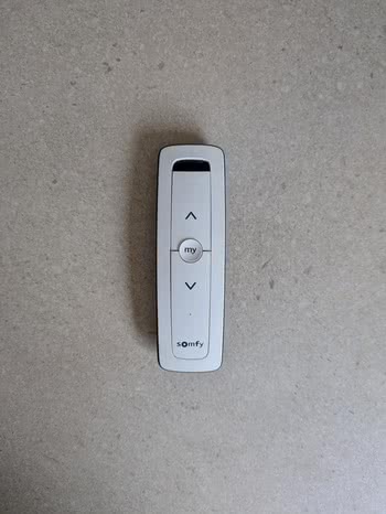 The sunshade is controlled via the remote control in the image here. The up button closes the awning, and the down button extends it.